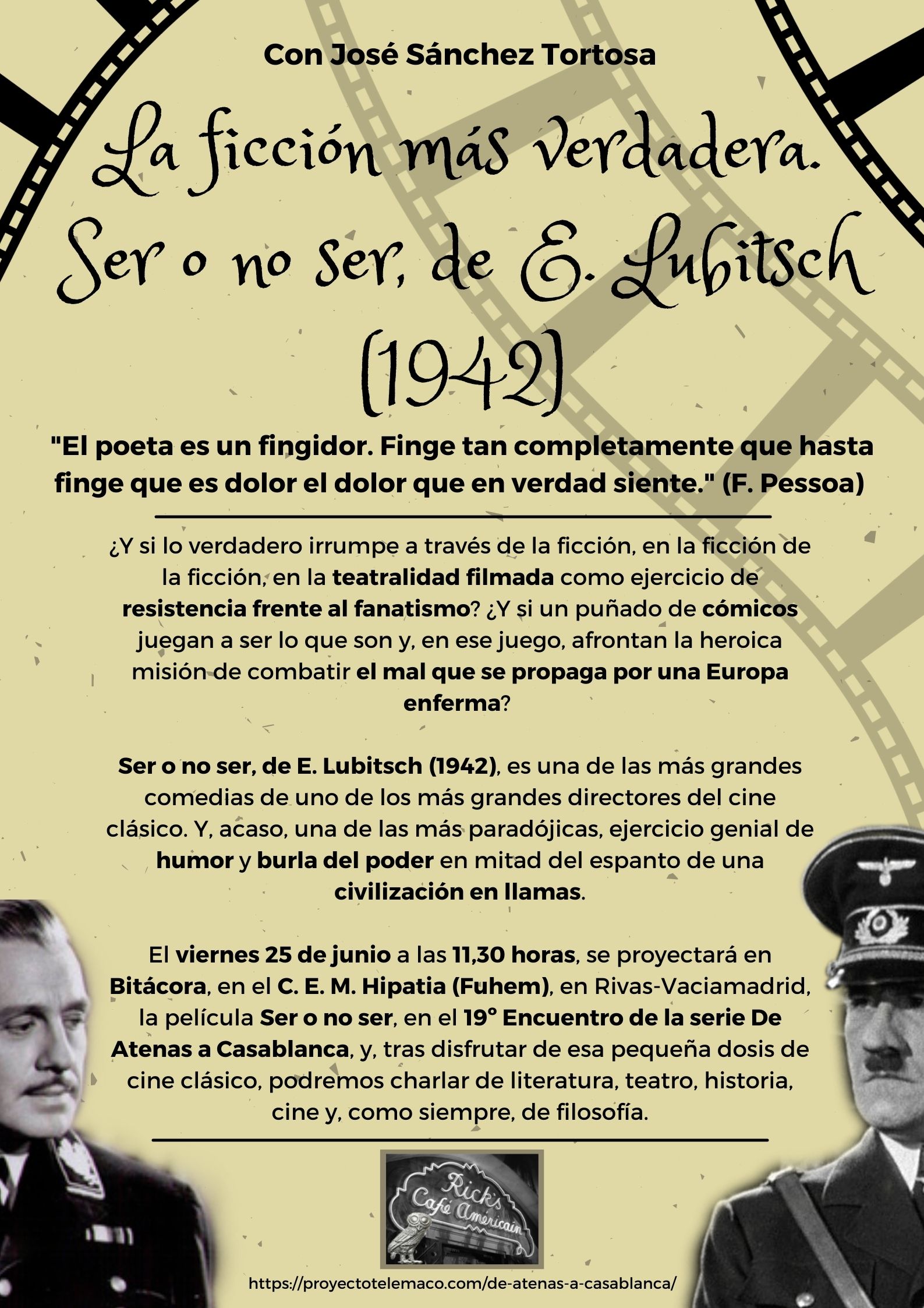 • 19º Encuentro de la serie De Atenas a Casablanca: Proyección de Ser o no ser, de Ernst Lubitsch.